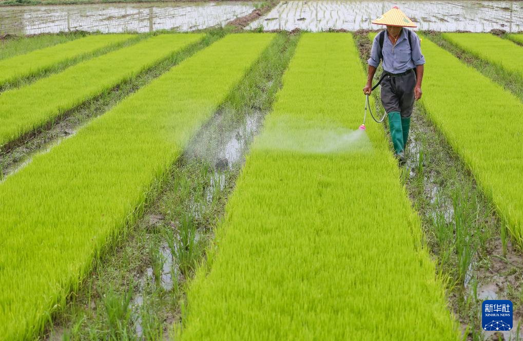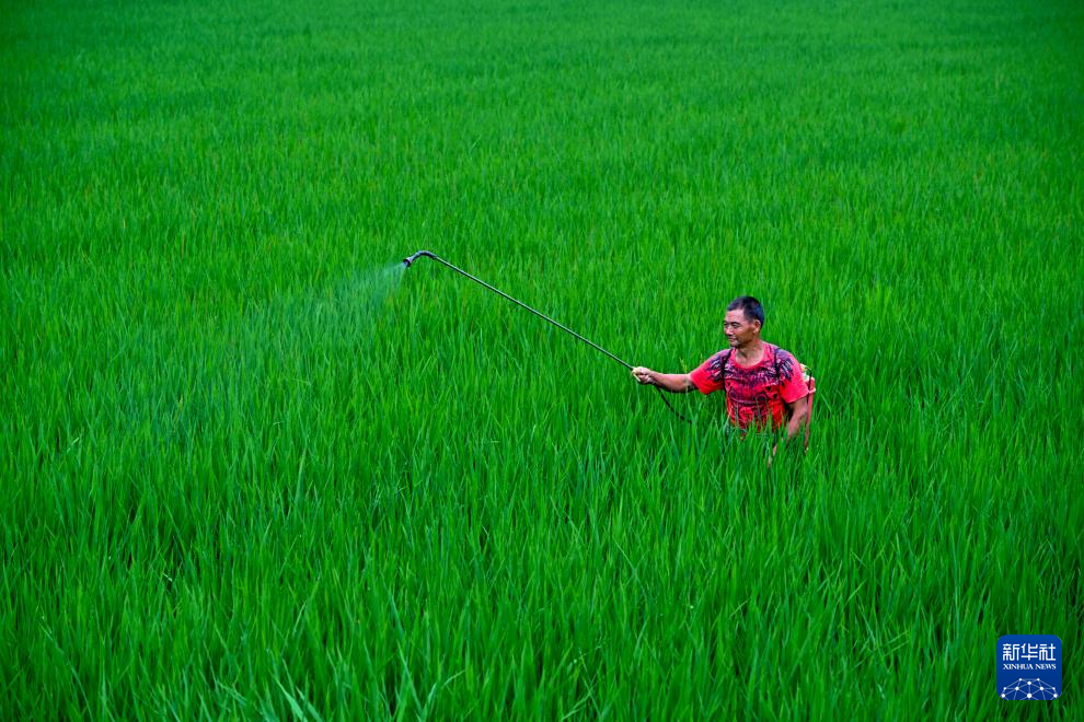 6月20日,四川省眉山市仁寿县彰加镇铁炉村农民在田间喷洒农药。新华社发(潘建勇摄)