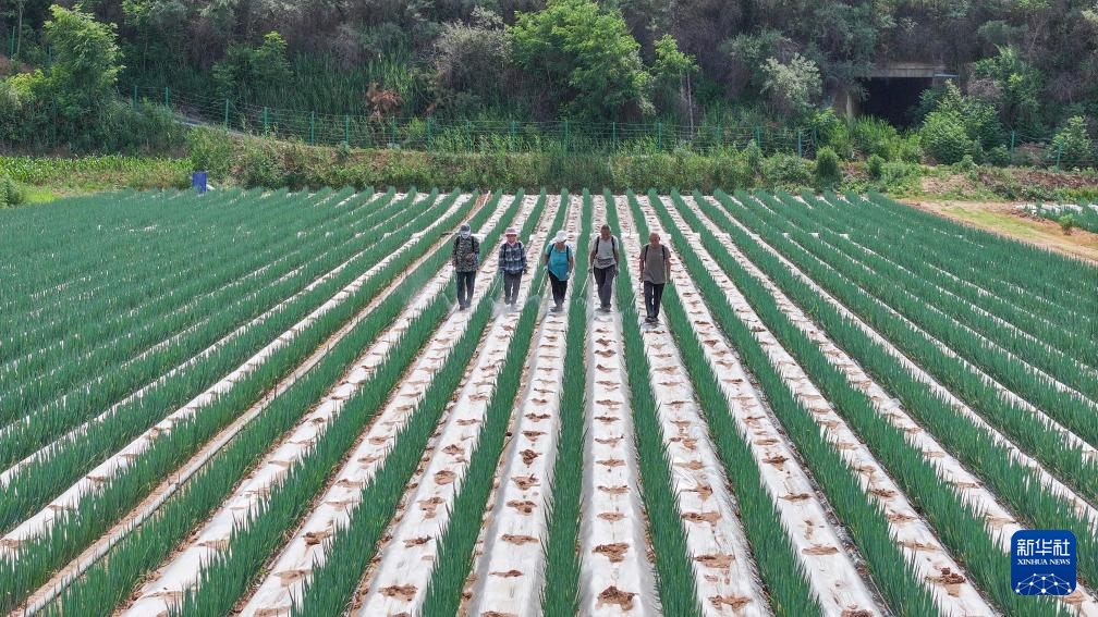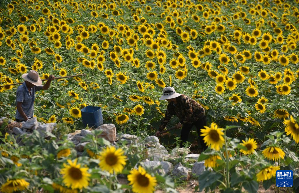 6月20日,山东省淄博市沂源县南麻街道重喜官庄村的农民在田间劳作。新华社发(赵东山摄)