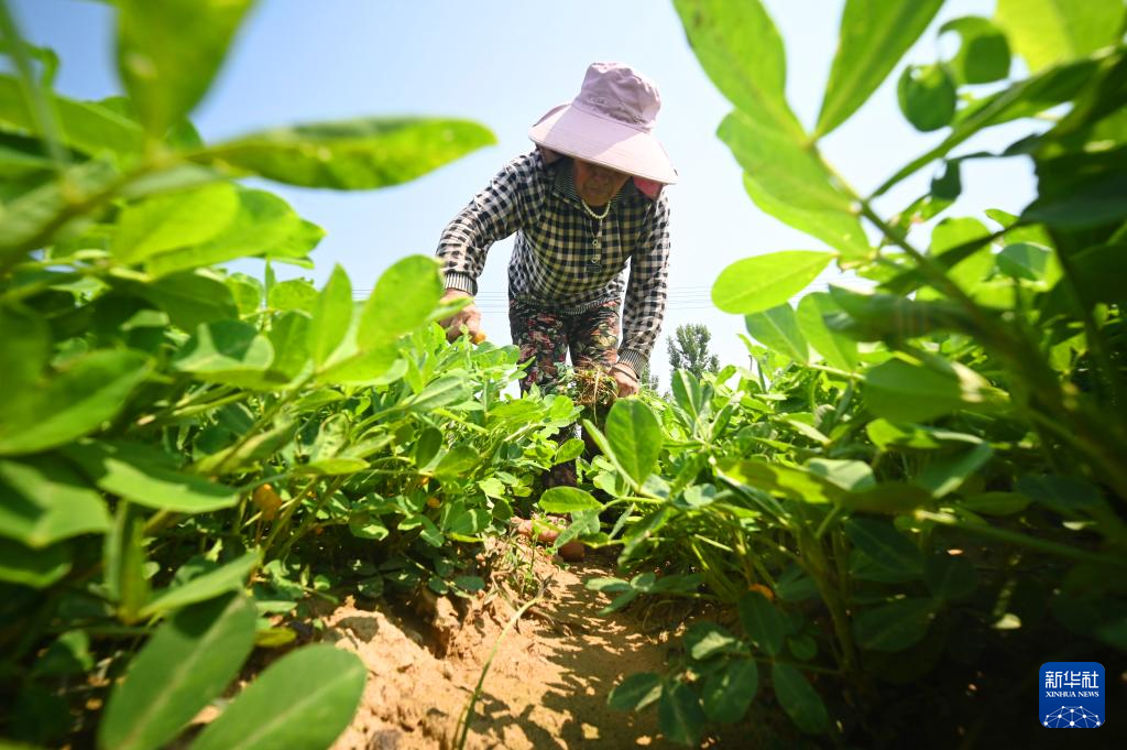 6月20日,河南省开封市鼓楼区仙人庄乡何楼村农民在花生地里除草。新华社发(李俊生摄)