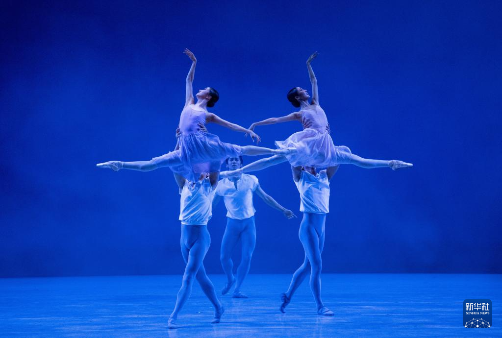 6月21日,演员在美国华盛顿肯尼迪表演艺术中心表演芭蕾《叙事曲》。新华社记者 刘杰 摄