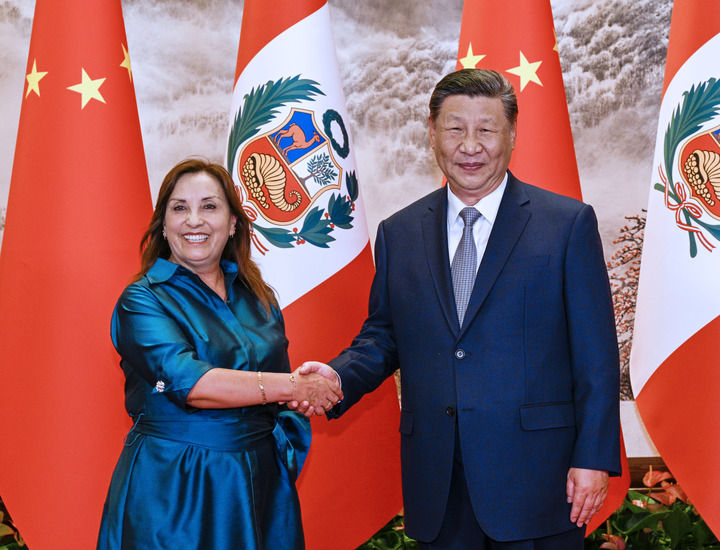 6月28日下午,国家主席习近平在北京人民大会堂同来华进行国事访问的秘鲁总统博鲁阿尔特举行会谈。会谈后,两国元首共同见证签署多项双边合作文件。这是习近平同博鲁阿尔特握手。新华社记者 刘卫兵 摄