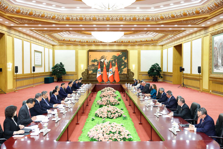6月28日下午,国家主席习近平在北京人民大会堂同来华进行国事访问的秘鲁总统博鲁阿尔特举行会谈。新华社记者 刘彬 摄