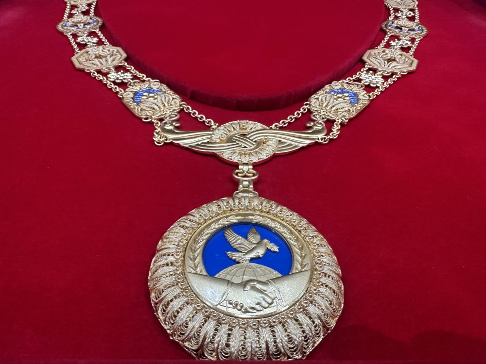 习近平主席在杜尚别总统府举行隆重授勋仪式,向拉赫蒙总统颁授“友谊勋章”。这是中方首次在境外举行勋章颁授仪式。