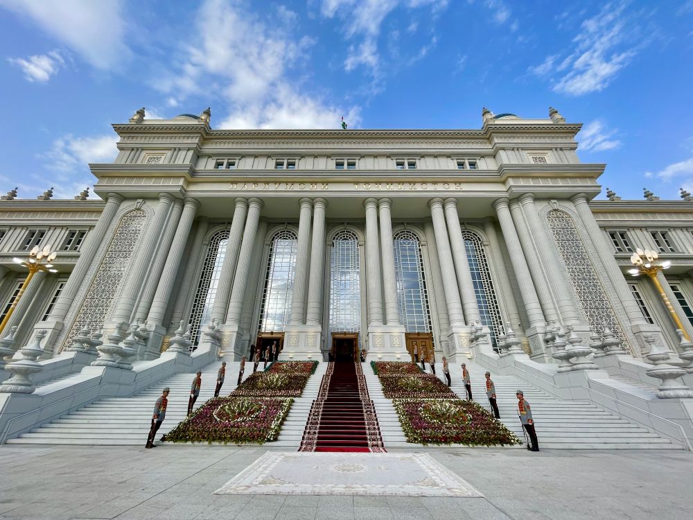 当地时间7月5日,拉赫蒙总统在总统府前广场为习近平主席举行盛大隆重的欢迎仪式。