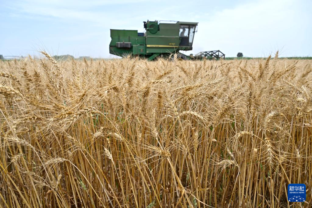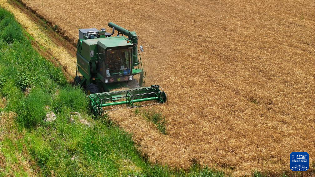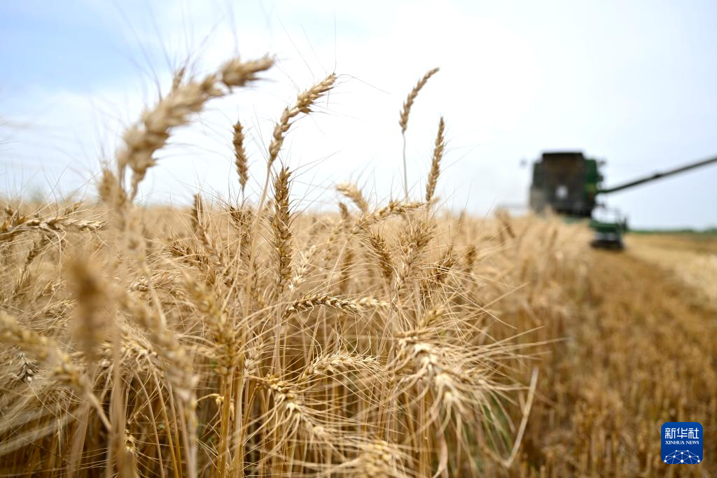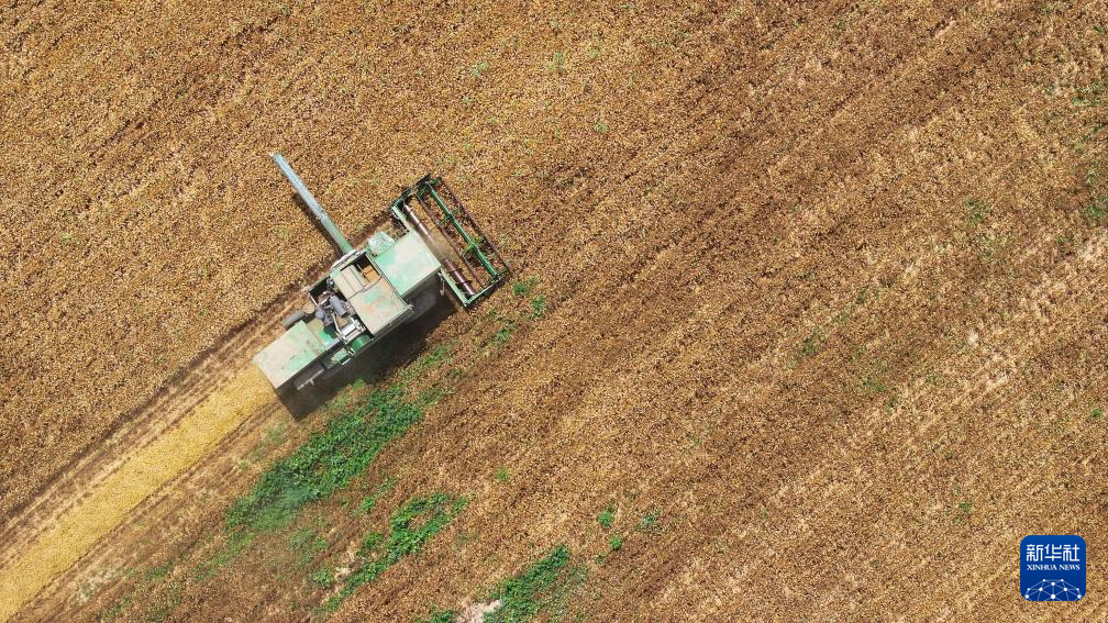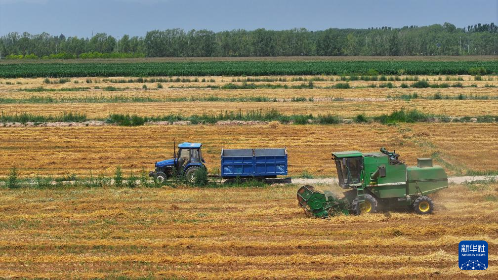 7月6日,宁夏贺兰县洪广镇农户在田间收获小麦。新华社记者 王鹏 摄