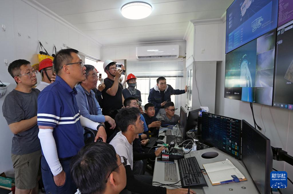 团队成员在控制中心操控深海采矿车,观察海底作业实时情况(6月22日摄)。新华社发(上海交通大学供图)