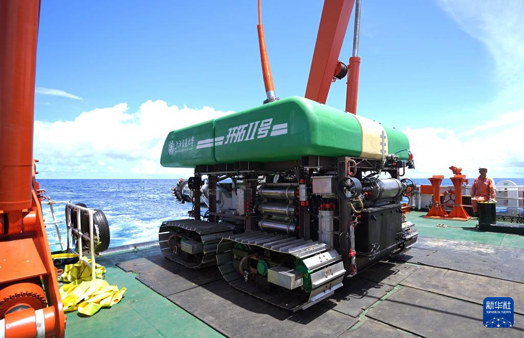 上海交通大学自主研制的深海重载作业采矿车工程样机“开拓二号”(6月20日摄)。新华社发(上海交通大学供图)