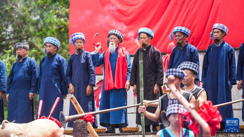 当日是农历六月初六,贵州省六盘水市六枝特区与周边地区的布依族群众相聚月亮河畔,欢度传统民族节日“六月六”。