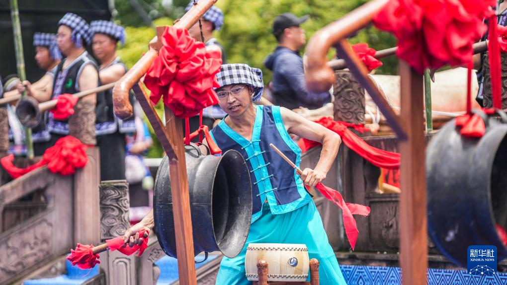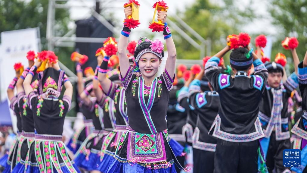 7月11日,当地群众在六盘水市六枝特区月亮河畔参加“六月六”庆祝活动。新华社记者 陶亮 摄