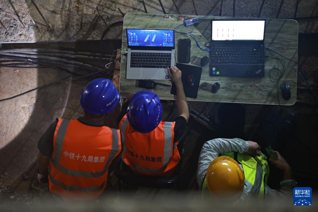 7月24日,建设者在监控平台上观看转体过程。新华社记者 杨青 摄