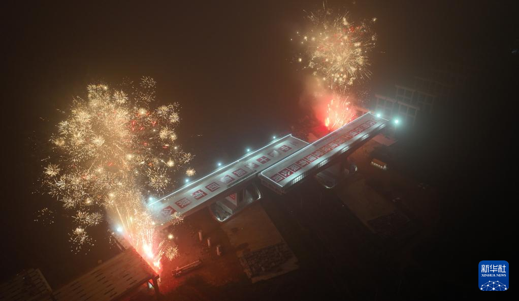 7月24日,小户尚公铁立交桥转体成功(无人机照片)。新华社记者 杨青 摄