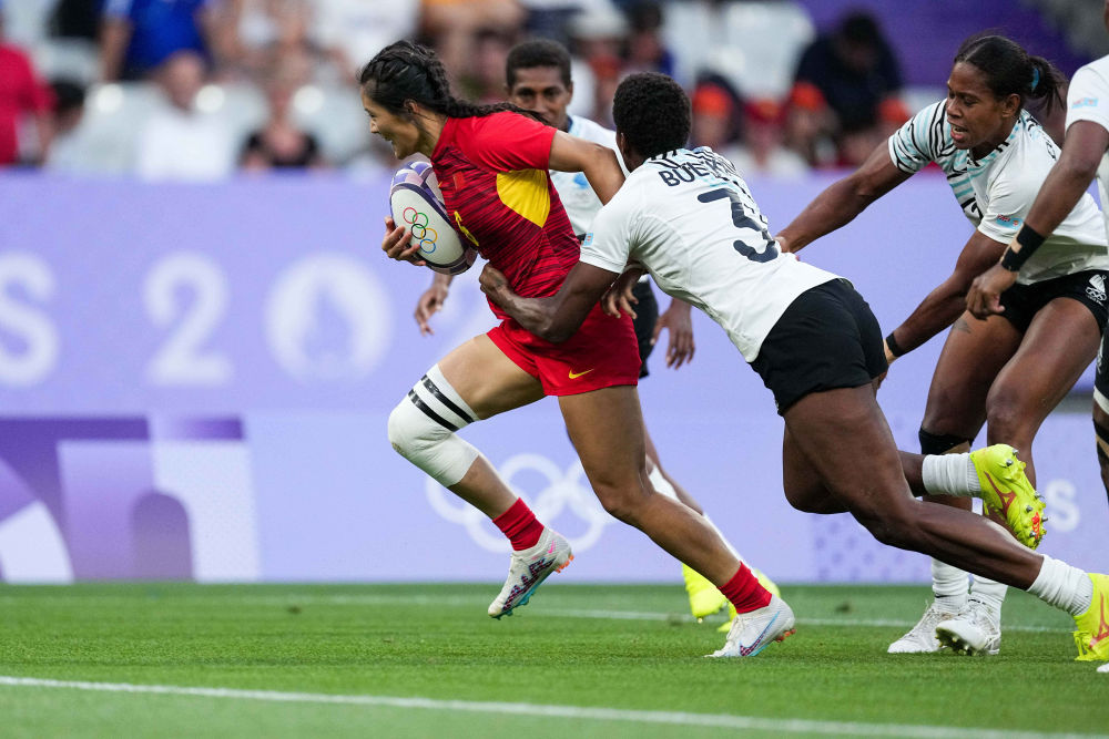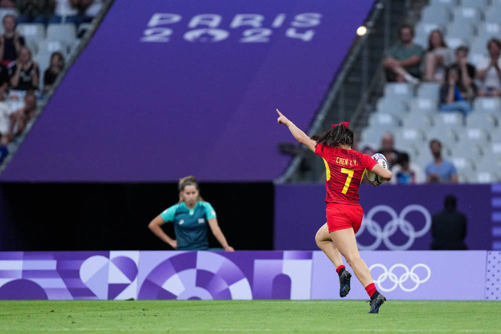 巴黎奥运会丨中国队女子七人制橄榄球小组赛首胜