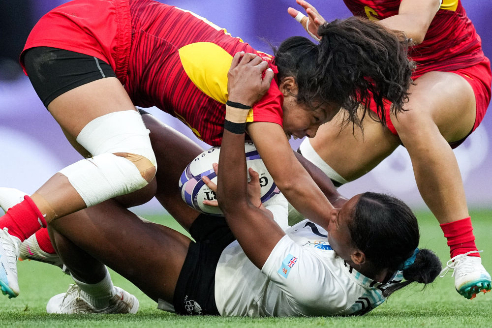 7月28日,在巴黎奥运会七人制橄榄球女子分组循环赛A组比赛中,中国队40比12战胜斐济队。