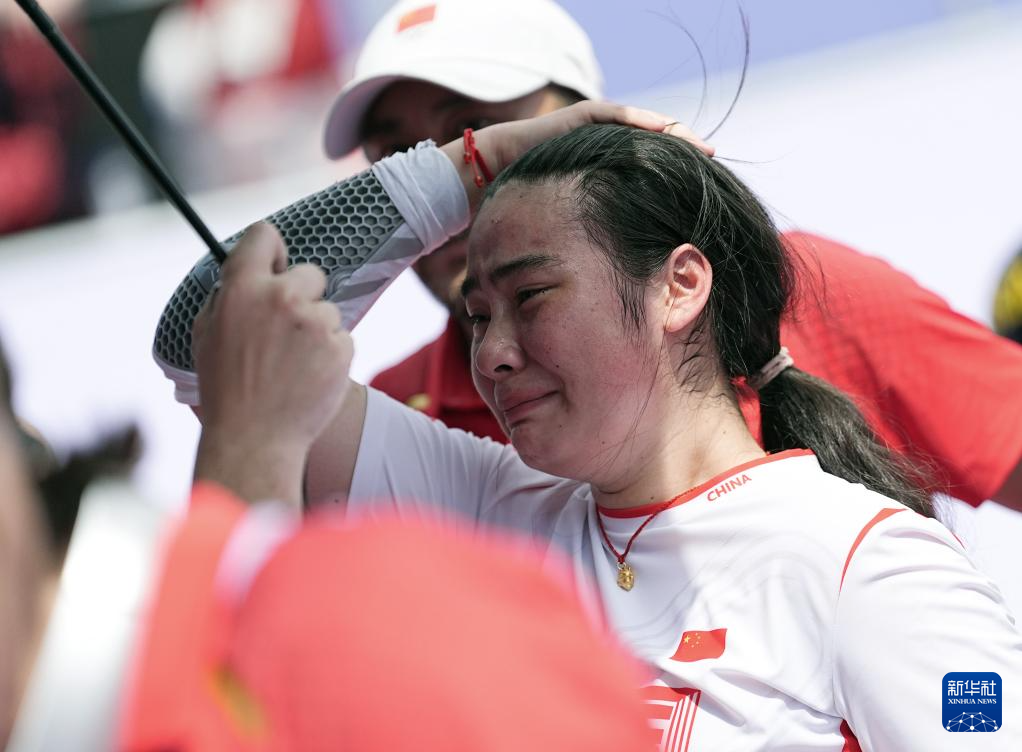 7月31日,邓雅文在比赛中庆祝。新华社记者 胡虎虎 摄