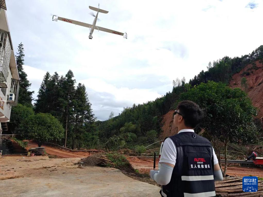7月29日,道通智能无人机团队在资兴市兴宁镇进行灾情勘察。新华社发