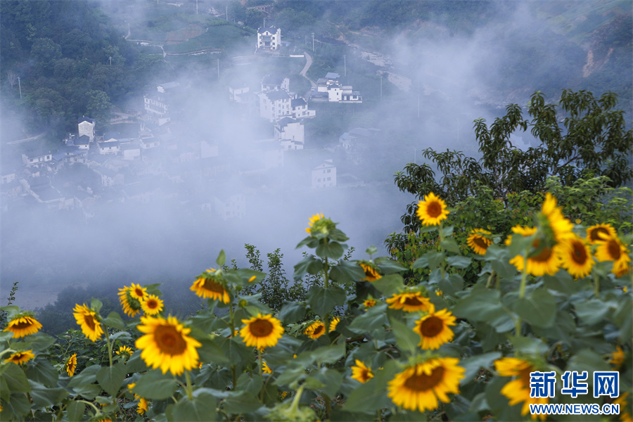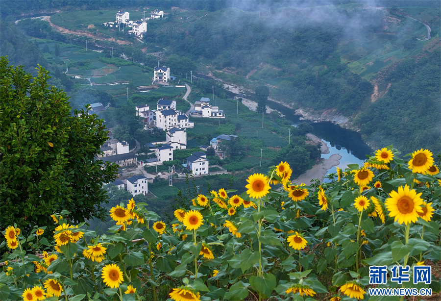 夏日,安徽省黄山市歙县石潭古村景色迷人,向日葵、格桑花次第绽放。游客们在花海中徜徉,感受着诗意盎然的夏日乡村美景。