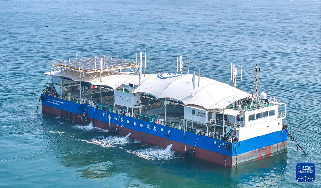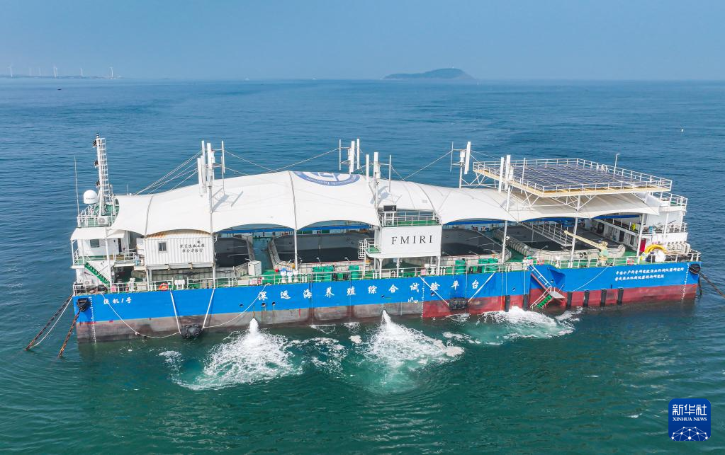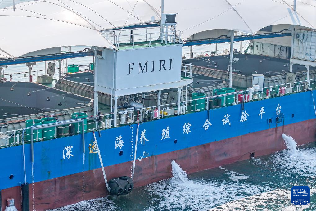 近日,由中国水产科学研究院渔业机械仪器研究所与荣成市携手打造的“渔机1号”深远海养殖综合试验平台在山东省荣成市北部海域成功布放并投入运营。新华社发(李信君 摄)