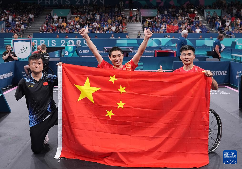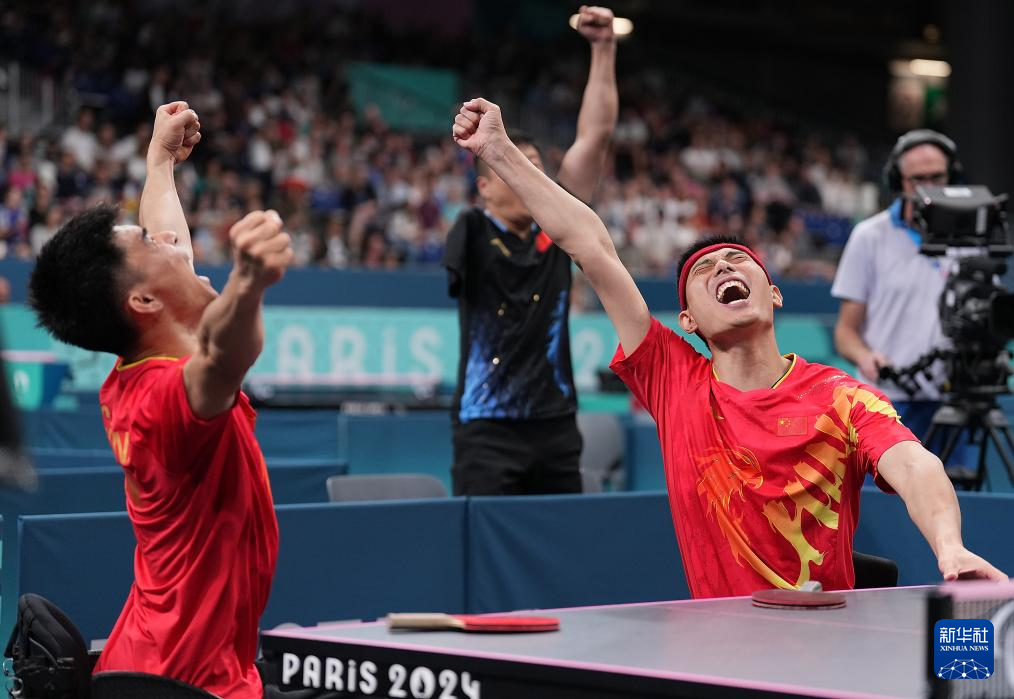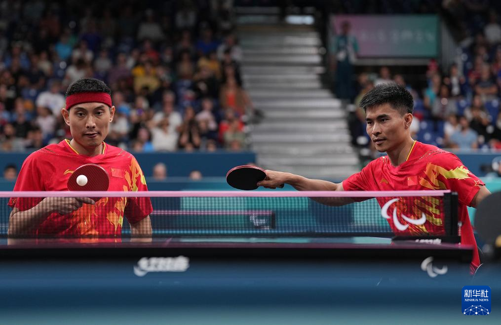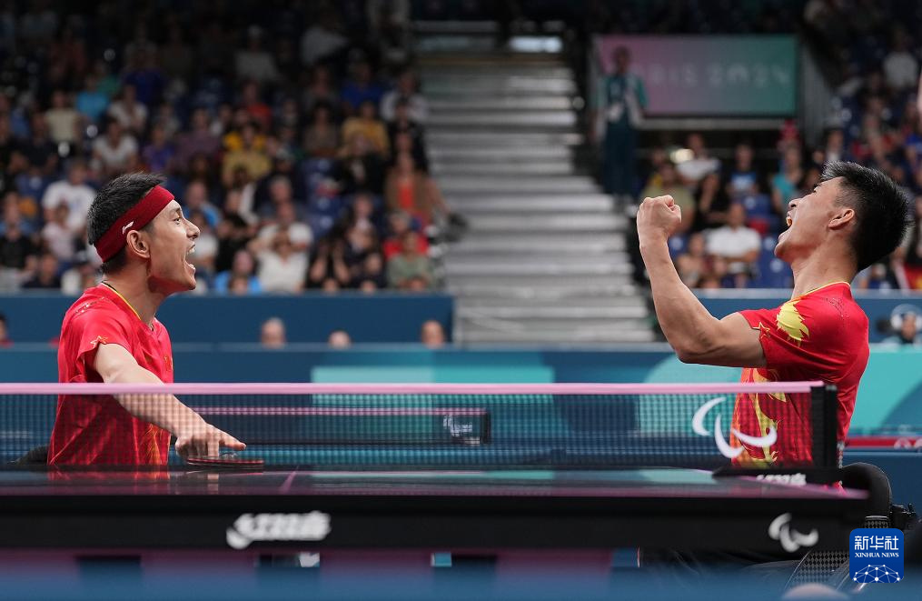 当日,在巴黎残奥会乒乓球男双8级决赛中,中国组合曹宁宁/冯攀峰3比0战胜德国组合鲍斯/施米德贝格尔,获得冠军。