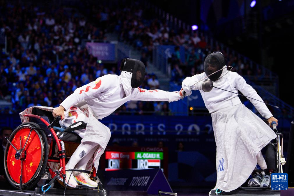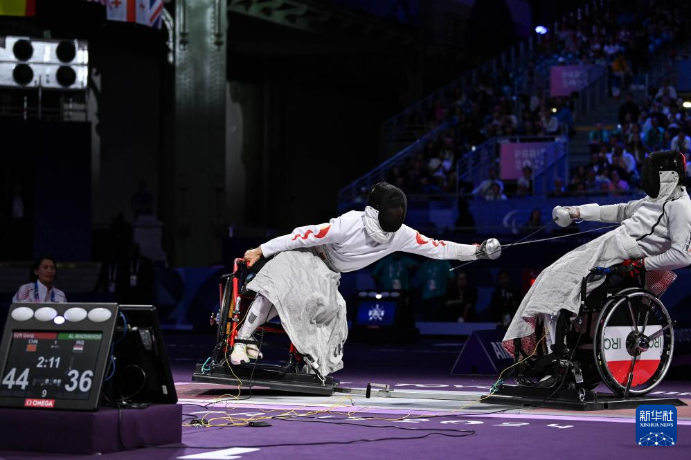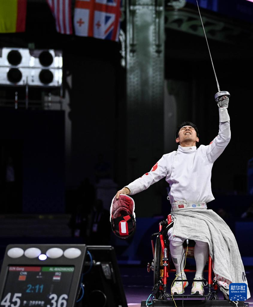 当日,在巴黎残奥会男子重剑团体赛决赛中,中国队45比36战胜伊拉克队,获得冠军。