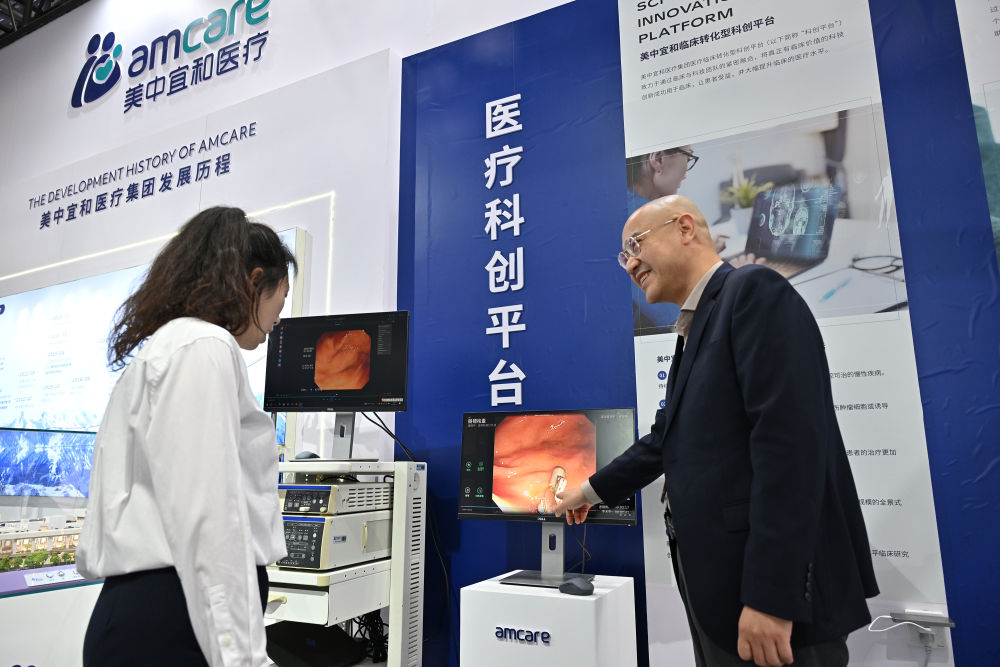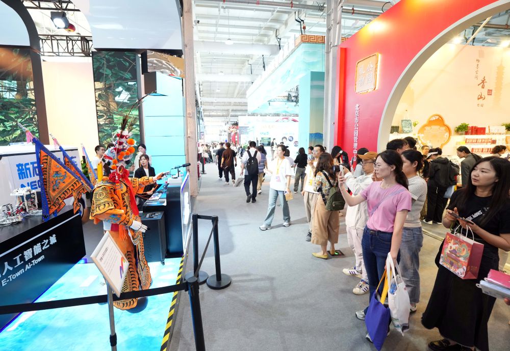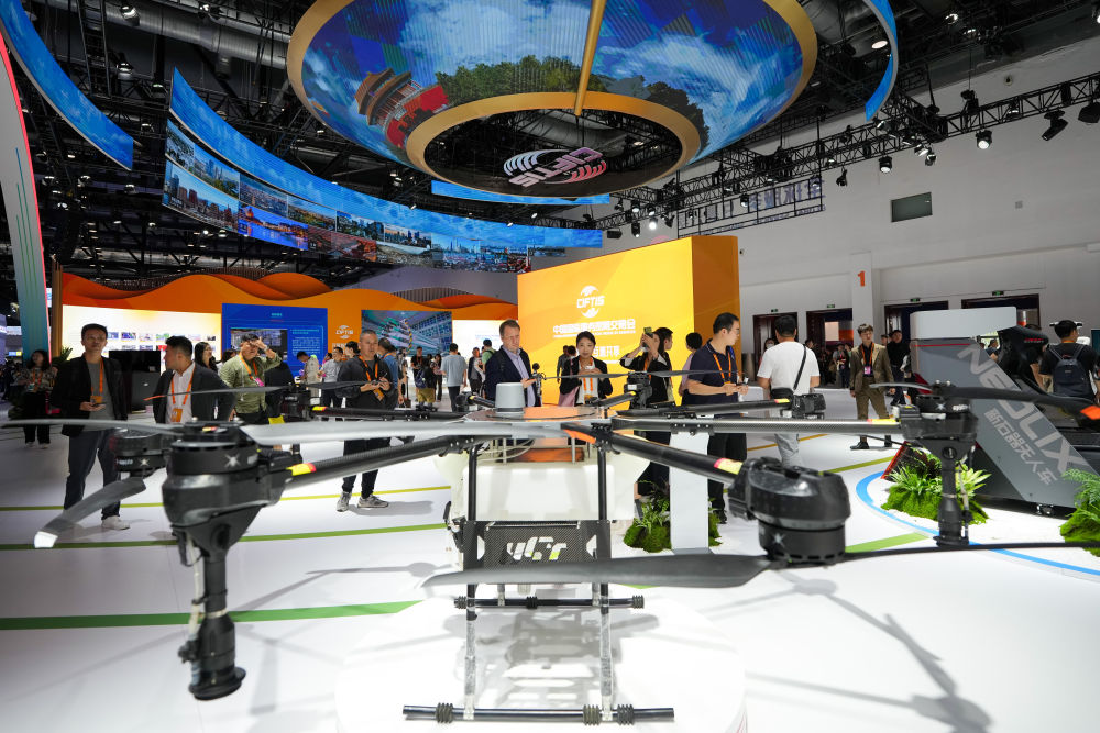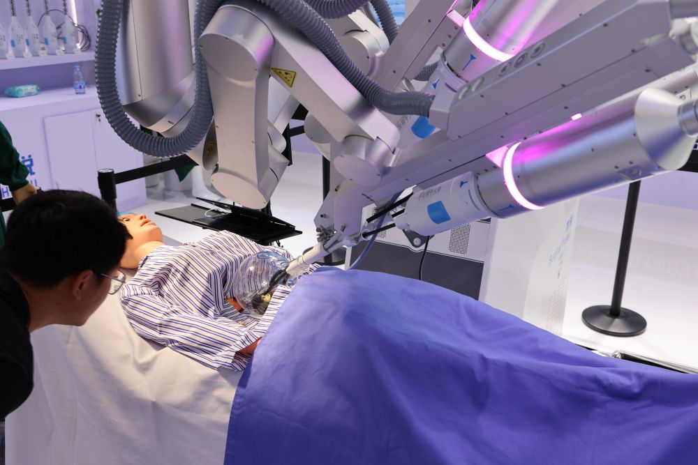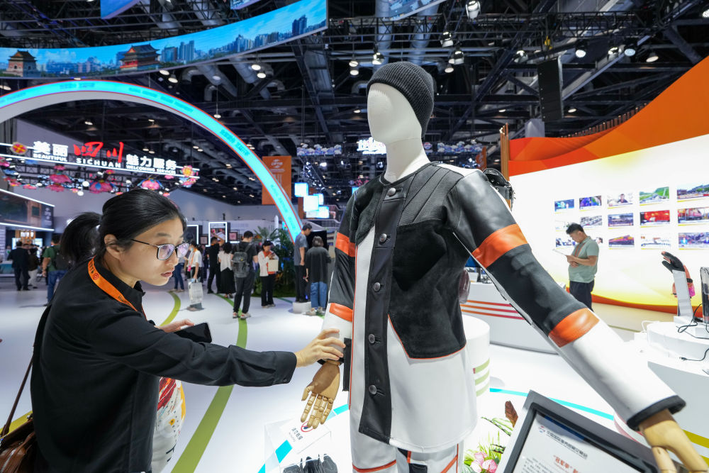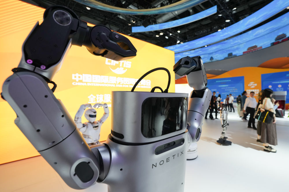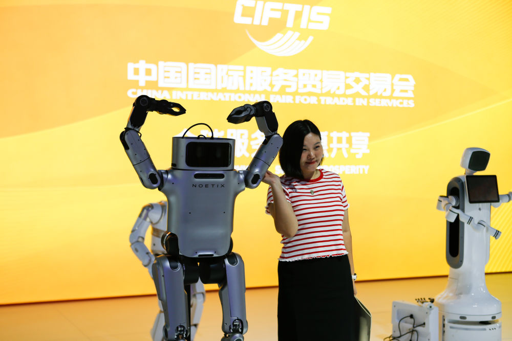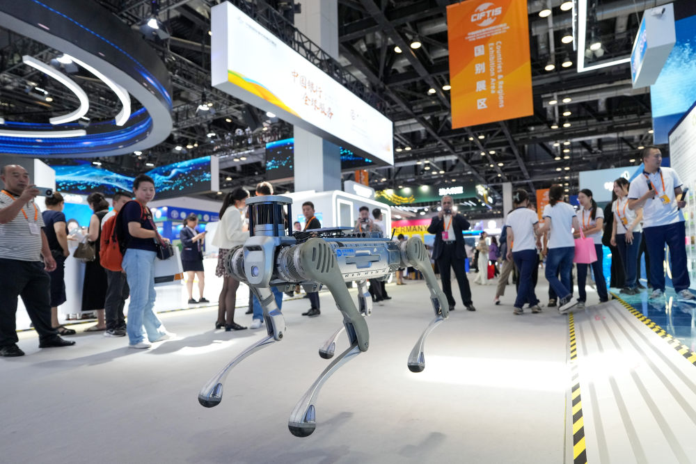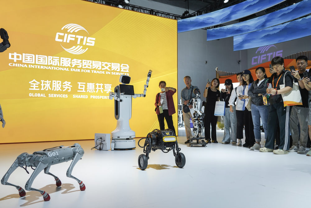 9月13日,参观者在服贸会国家会议中心会场与机器人合影。新华社记者 丁洪法 摄 9月13日,参观者在服贸会首钢园区美中宜和医疗展台了解一款AI胃肠镜医疗平台。该设备可实时评估肠道情况并自动检测出病变区域和类型,辅助医生提高胃肠镜检查效率和质量。新华社记者 李鑫 摄 9月13日在服贸会首钢园区拍摄的一款戏曲人形仿生机器人。该戏曲人形仿生机器人可实现智能抓取、自主行走、自动避障、自动平衡等功能,模拟戏曲演员的动作和唱腔,进行戏曲表演,为观众带来全新的观赏体验。新华社记者 陈晔华 摄这是9月13日在服贸会国家会议中心会场拍摄的机器人。新华社记者 丁洪法 摄9月13日,参会者在服贸会国家会议中心会场了解无辐式超级氢能摩托车。新华社记者 丁洪法 摄这是服贸会首钢园区京能集团展台上展示的移动充电车,具有超快充、超宽温作业、高安全性等特点(9月13日摄)。新华社记者 李鑫 摄9月13日在服贸会国家会议中心综合展区拍摄的一款具有眼动追踪功能的隐形眼镜。新华社记者 鞠焕宗 摄9月13日,在服贸会国家会议中心综合展区,参观者观看展出的“冠军甲”射击皮服。新华社记者 鞠焕宗 摄9月13日,参观者在服贸会国家会议中心综合展区参观展出的人工智能骨科手术机器人。新华社记者 鞠焕宗 摄 9月13日,工作人员为参观者讲解韶脑科技的脑控神经康复训练机器人。该机器人使用非侵入式脑机接口技术,通过解析使用者脑电波并转换成操控信号,可以让使用者通过机器人进行自主移动。新华社记者 戚晓毅 摄9月13日在服贸会国家会议中心综合展区拍摄的一款具有眼动追踪功能的隐形眼镜。新华社记者 鞠焕宗 摄9月13日,在服贸会首钢园区,一名参观者触摸展出的多功能文保全息展柜的屏幕,查看数字文物的详细信息。新华社记者 陈晔华 摄9月13日,在服贸会国家会议中心综合展区,参观者在拍摄美团买药无人值守场景机器人演示。新华社记者 鞠焕宗 摄 9月13日,在服贸会首钢园区,参观者观看展出的一款戏曲人形仿生机器人。该戏曲人形仿生机器人可实现智能抓取、自主行走、自动避障、自动平衡等功能,模拟戏曲演员的动作和唱腔,进行戏曲表演,为观众带来全新的观赏体验。新华社记者 陈晔华 摄9月13日,参观者在服贸会首钢园区中建一局展台观看预制混凝土结构箱式房屋建筑模型,该建造技术具有模块化设计、工厂化加工、一体化装修等优势,大大缩短施工周期。新华社记者 李鑫 摄9月13日,在服贸会文旅服务专题展区,仿生人形机器人“小柒”向观众致意。新华社记者 曹梦瑶 摄 9月13日,在位于首钢园区工程咨询与建筑服务专题展区的中国建筑第二工程局展位上,参展人员观看绿色智能搅拌站系统模型。该搅拌站系统采用了绿色低碳骨料储运技术、远程集群控制技术、智能化信息化控制技术等,提升搅拌站的生产效率和产品质量,并促进建筑资源循环使用。新华社记者 陈钟昊 摄9月13日,一名小朋友在首钢园区文旅服务专题展区体验混合现实一体机。新华社记者 陈钟昊 摄9月13日,在服贸会国家会议中心展区,参观者在观看机器人表演。新华社记者 曹梦瑶 摄9月13日,在首钢园区文旅服务专题展区的中国电影博物馆展位,参展人员在体验XR(扩展现实)虚拟拍摄技术。新华社记者 陈钟昊 摄9月13日,一名参观者在服贸会首钢园区了解一款由中科院研发的相变降温马甲。该马甲具有恒温、可重复使用等特点。新华社记者 李鑫 摄9月12日,在服贸会首钢园区文旅服务专区,参观者使用PICO最新发布的PICO 4 Ultra设备沉浸式体验“三体游戏”。新华社记者 曹梦瑶 摄9月13日,一名参观者在京东方展台观看类纸画屏直显系列画屏墙,该屏幕运用无损Gamma专利显示技术、低反防炫光技术、自适应感光技术等多种技术实现类纸显示效果。新华社记者 李鑫 摄9月13日,在服贸会首钢园区,工作人员(左)向参观者介绍一款新能源汽车的底盘技术。新华社记者 李芒茫 摄9月13日,在服贸会国家会议中心综合展区,观众参观展出的人形机器人。新华社记者 鞠焕宗 摄 9月13日在服贸会国家会议中心展区拍摄的一款人工智能骨科手术机器人。该机器人由“智慧脑+智慧手+智慧眼”组合而成,能够辅助医生将术前人工智能定制的方案在术中精准实施。新华社记者 曹梦瑶 摄9月13日,在服贸会国家会议中心综合展区,参观者在观看一台机器狗的跳跃演示。新华社记者 鞠焕宗 摄9月13日,观众在一轻科技展台观看“智能家庭种植机”。新华社记者 邹广萍 摄9月13日,参观者在观看术锐单孔腔镜手术机器人剥去一枚鹌鹑蛋的外壳。据了解,该机器人具有单孔超微创、操作灵活有力、视野调整范围大、定位臂安全协动等特点。新华社记者 戚晓毅 摄9月13日,在服贸会国家会议中心综合展区,展出的人形机器人向观众比出爱心手势。新华社记者 鞠焕宗 摄9月13日,参观者在服贸会国家会议中心阿里巴巴公司展台体验VR设备。新华社记者 曹梦瑶 摄9月13日,在服贸会国家会议中心综合展区,观众参观展出的H200植保无人机。新华社记者 鞠焕宗 摄9月13日,在位于首钢园区文旅服务专题展区的北京市大兴区展位上,参展商北京聚智合众科技有限公司工作人员介绍一款氢能混合动力两轮车。新华社记者 陈钟昊 摄9月13日,服贸会首钢园工商银行展台工作人员展示用数字人民币硬钱