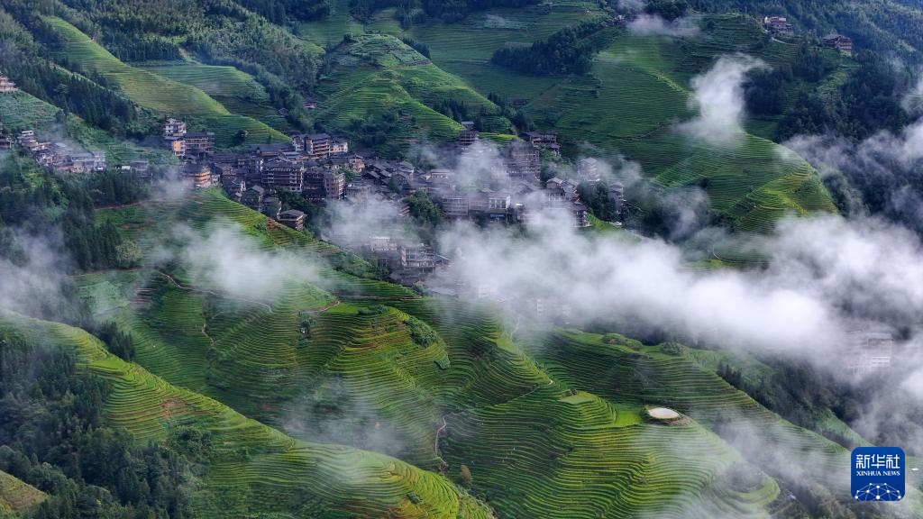 龙脊梯田景观(无人机照片) 新华社发(潘志祥 摄)