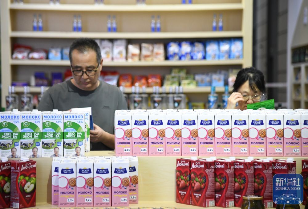 ↑9月20日,观众在博览会现场选购俄罗斯产品。