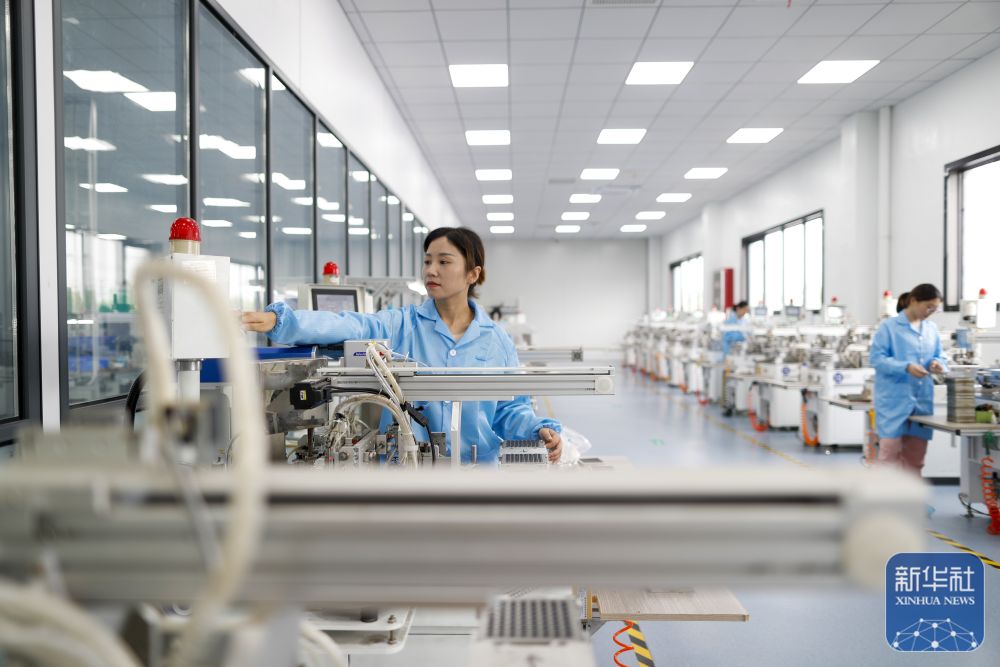 10月1日,在江苏省兴化市陈堡镇的江苏华能电子有限公司,工人在车间生产蜂鸣器。新华社发(周社根摄)