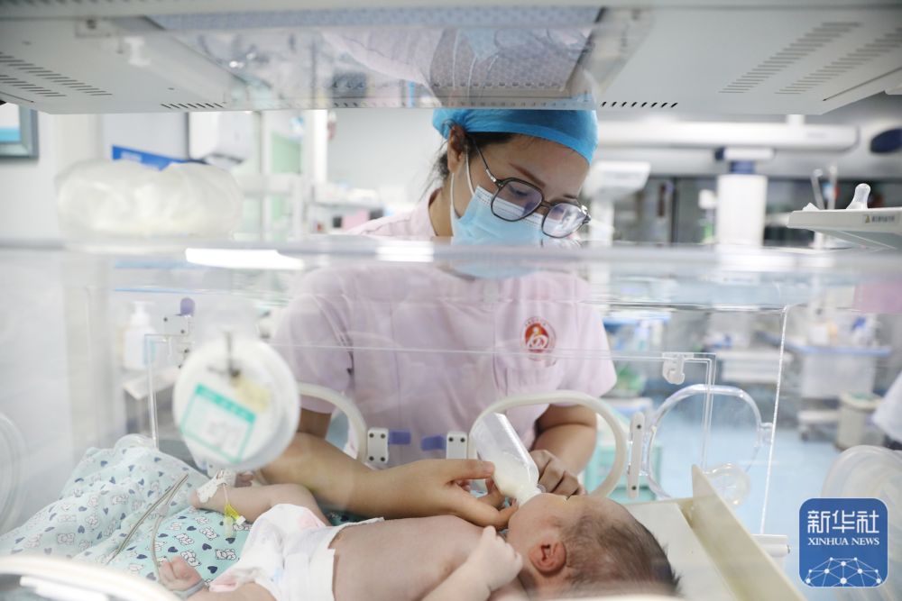 10月1日,河南省焦作市温县妇幼保健院的护士在给新生儿喂奶。新华社发(徐宏星摄)