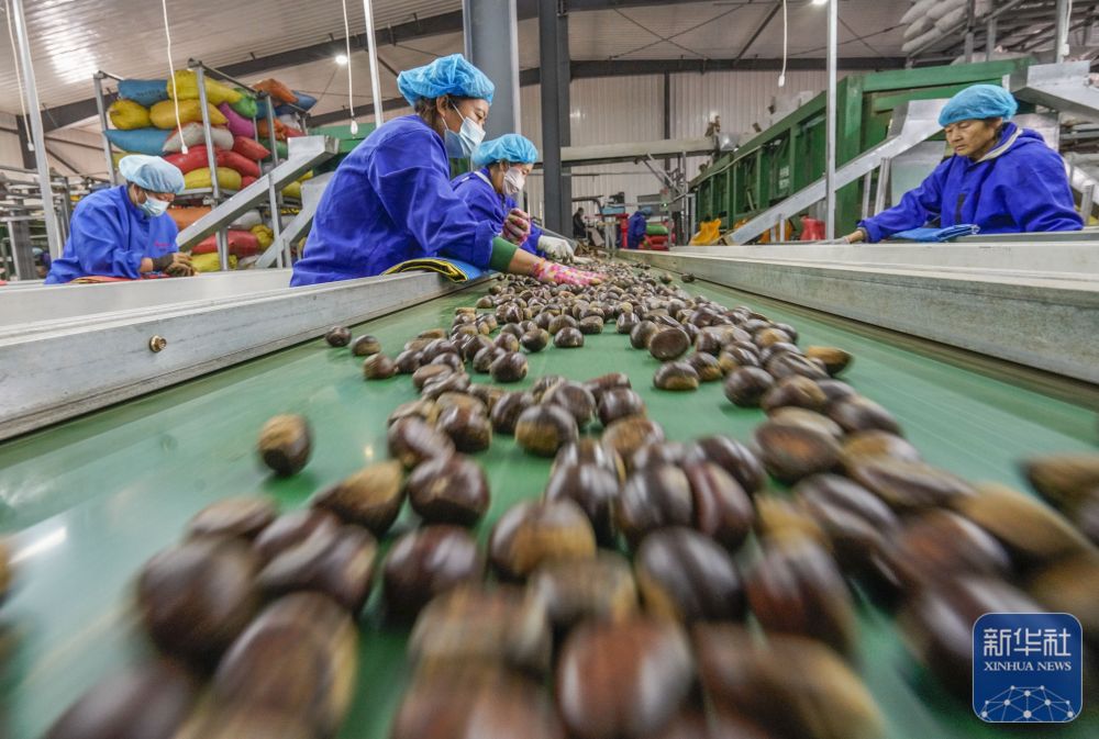 10月1日,工人在河北省遵化市一家板栗加工厂车间工作。新华社发(刘满仓摄)