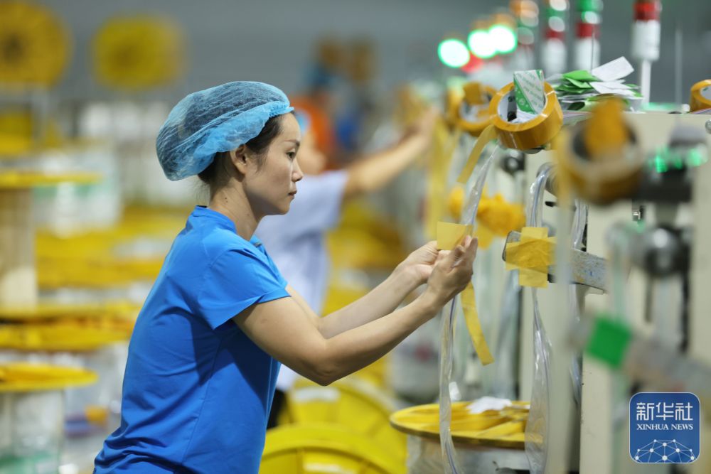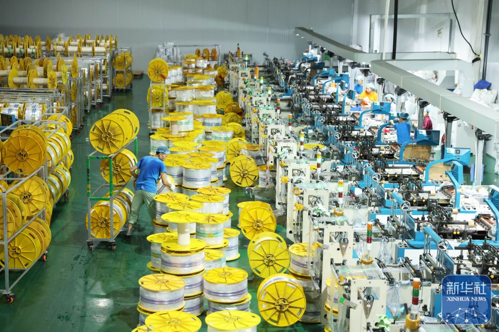 10月1日,在浙江省湖州市德清县乾元镇的尚邑塑料制品有限公司生产车间,工人赶制出口食品保鲜袋订单。新华社发(倪立芳摄)
