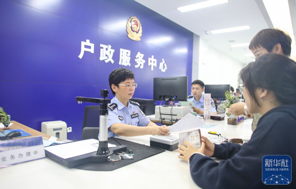 10月1日,合肥市公安局经济技术开发区分局民警为市民办理业务。新华社记者 曹力 摄