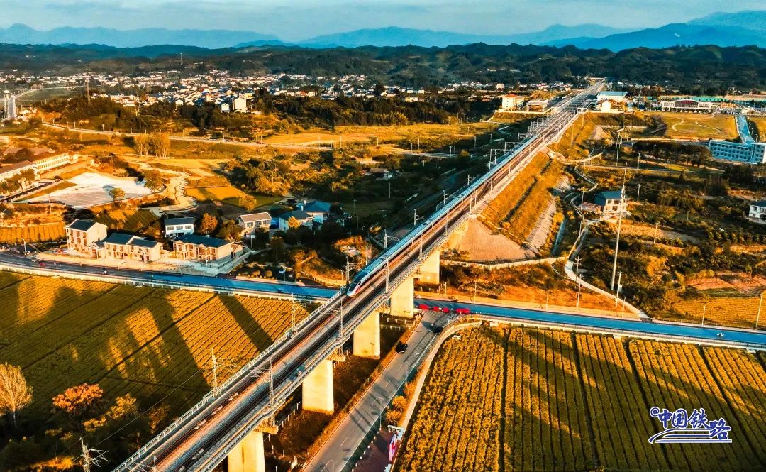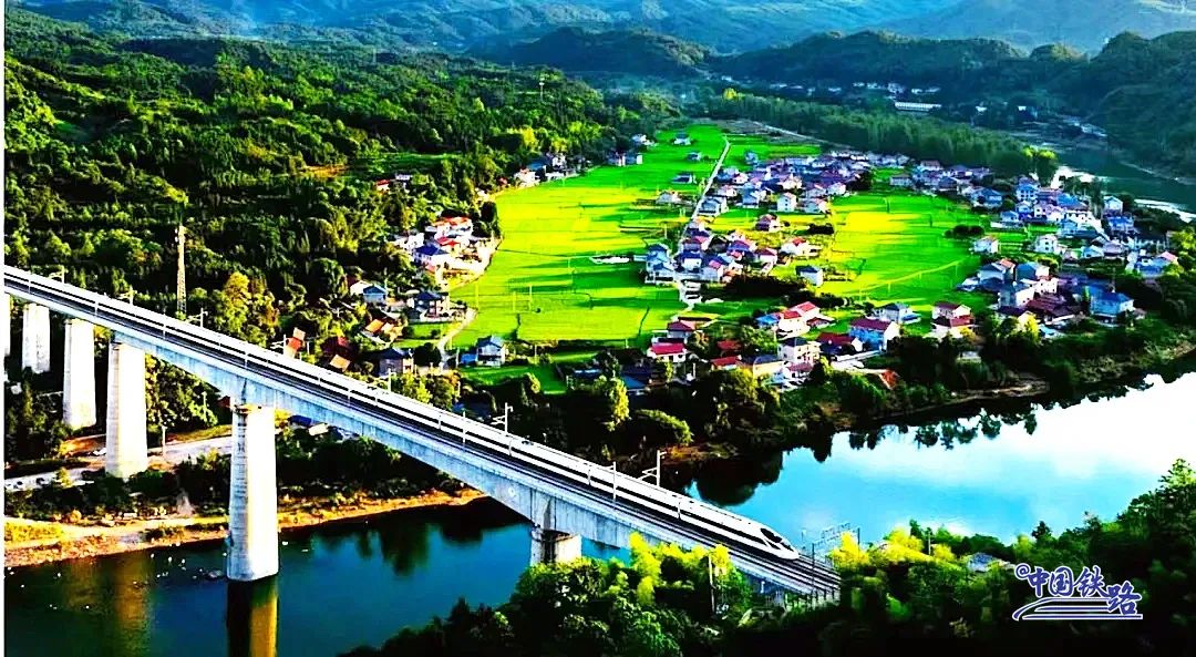 复兴号穿过湖南怀化的美丽村庄。李小平 摄