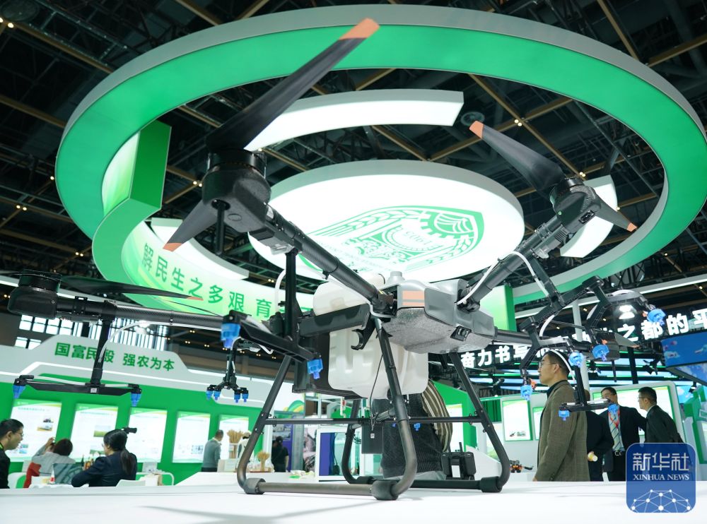 ↑这是10月11日在世界农业科技博览会拍摄的一款六旋翼植保无人飞机。
