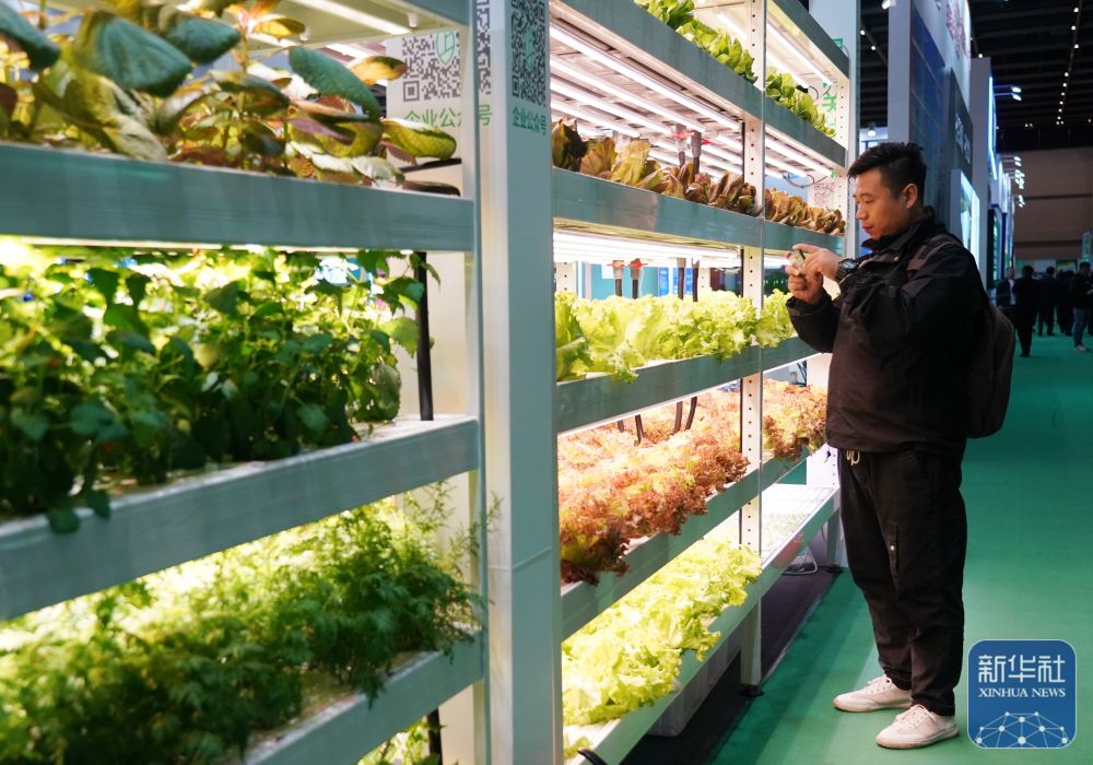 ↑10月11日,参观者在世界农业科技博览会现场参观智慧植物工厂。