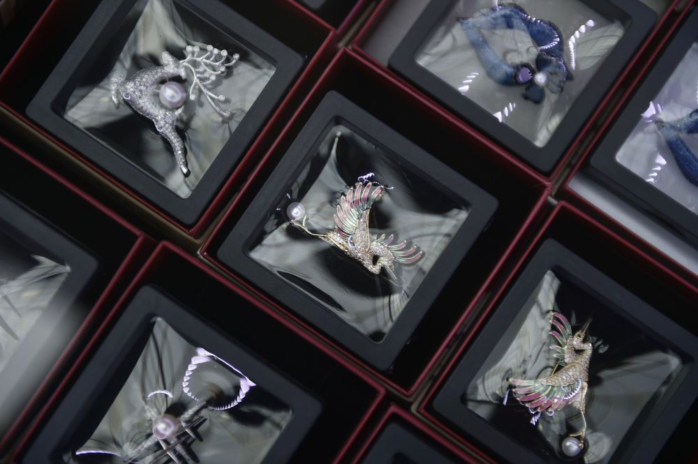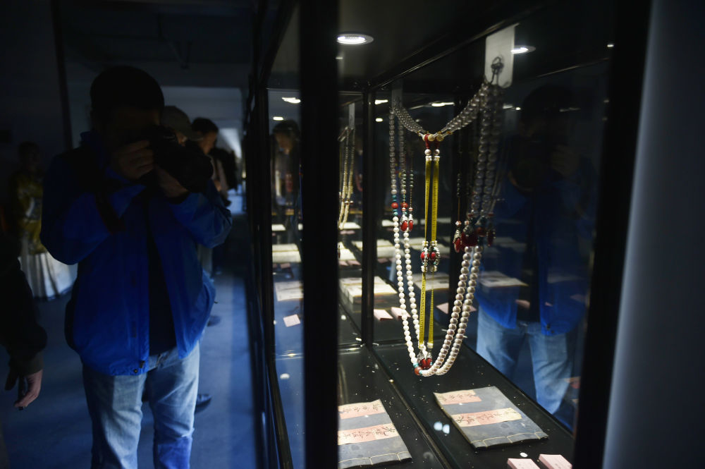 ↑这是10月11日在东珠珍宝博物馆拍摄的东珠工艺品。