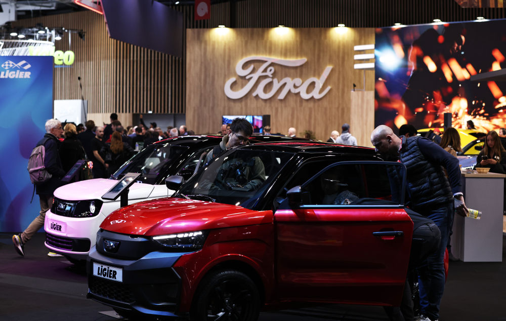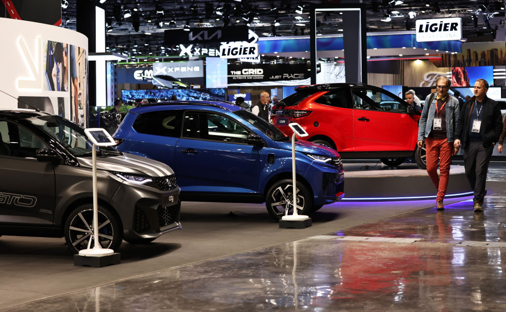 ↑10月14日,人们在法国巴黎凡尔赛门展览中心举行的2024巴黎车展媒体开放日上参观。