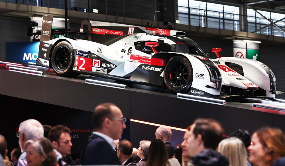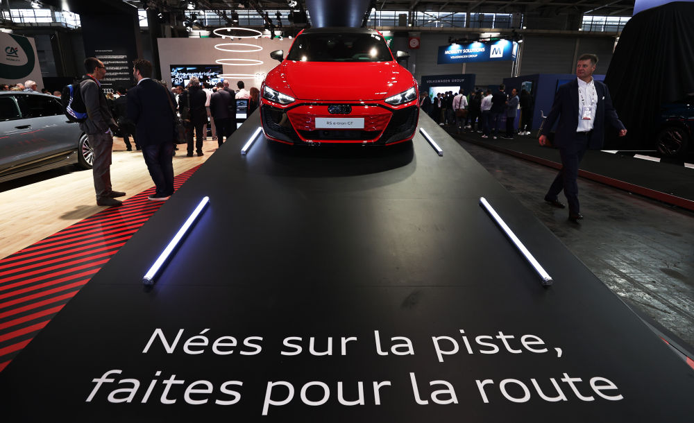 ↑10月14日,人们在法国巴黎凡尔赛门展览中心举行的2024巴黎车展媒体开放日上参观奥迪展台。