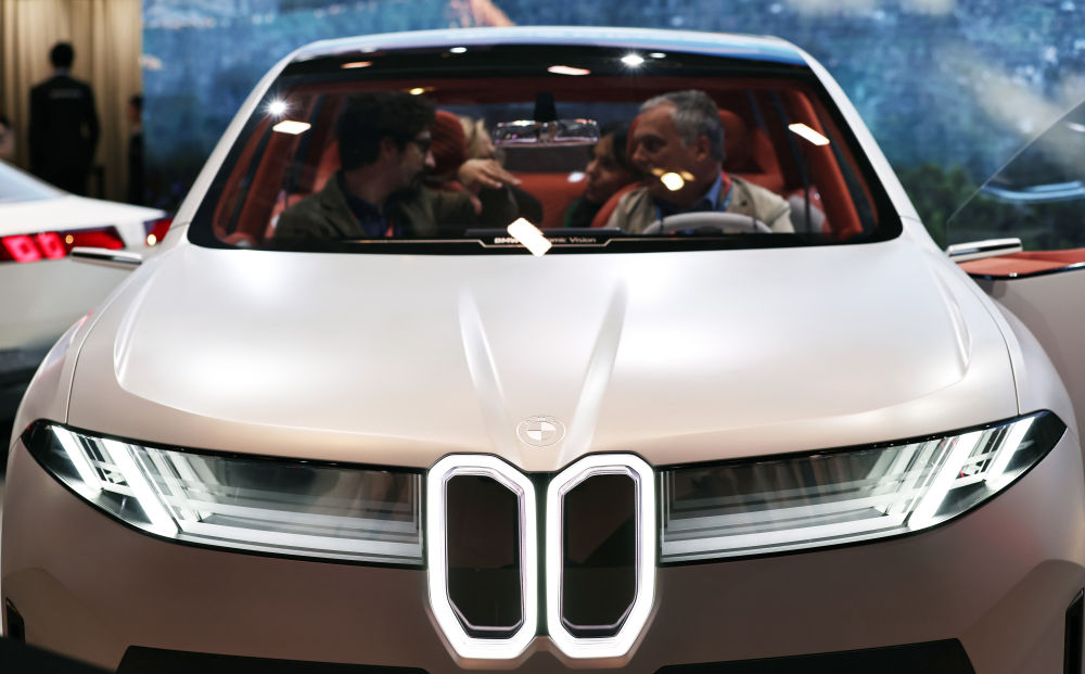 ↑10月14日,在法国巴黎凡尔赛门展览中心举行的2024巴黎车展媒体开放日上,人们在宝马展台参观。