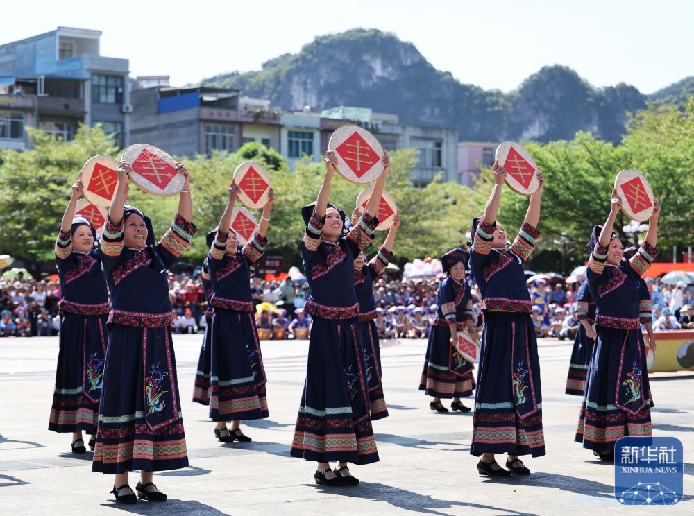 ↑ 10月23日,演员在天等县霜降节开幕活动中表演。
