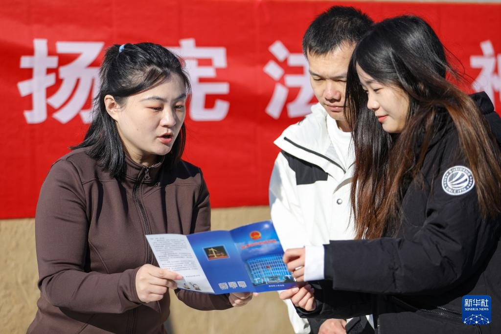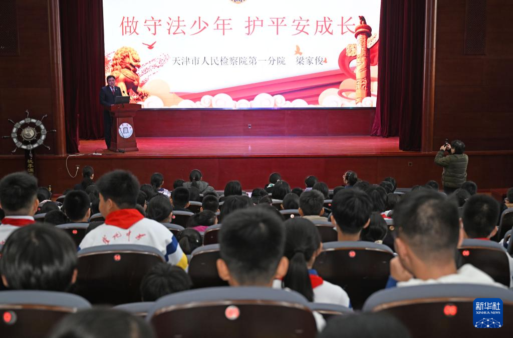 12月3日,天津市人民检察院第一分院检察干警向天津市南开区崇化中学学生普及宪法知识。新华社记者 赵子硕 摄