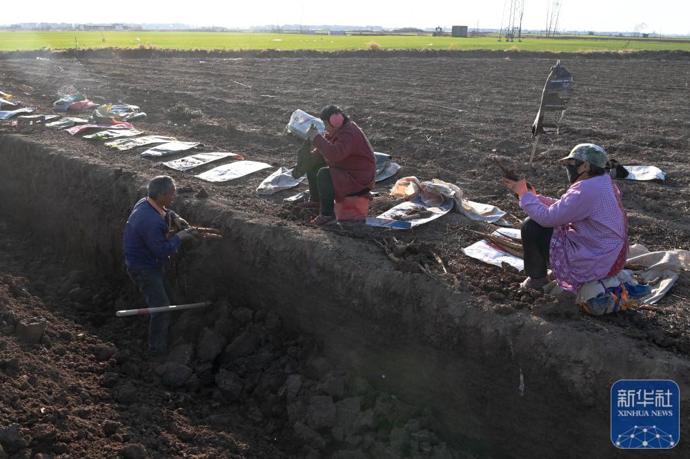 12月21日,在河南省沁阳市王曲乡村,农民在田间采挖怀山药。新华社发(杨帆摄)