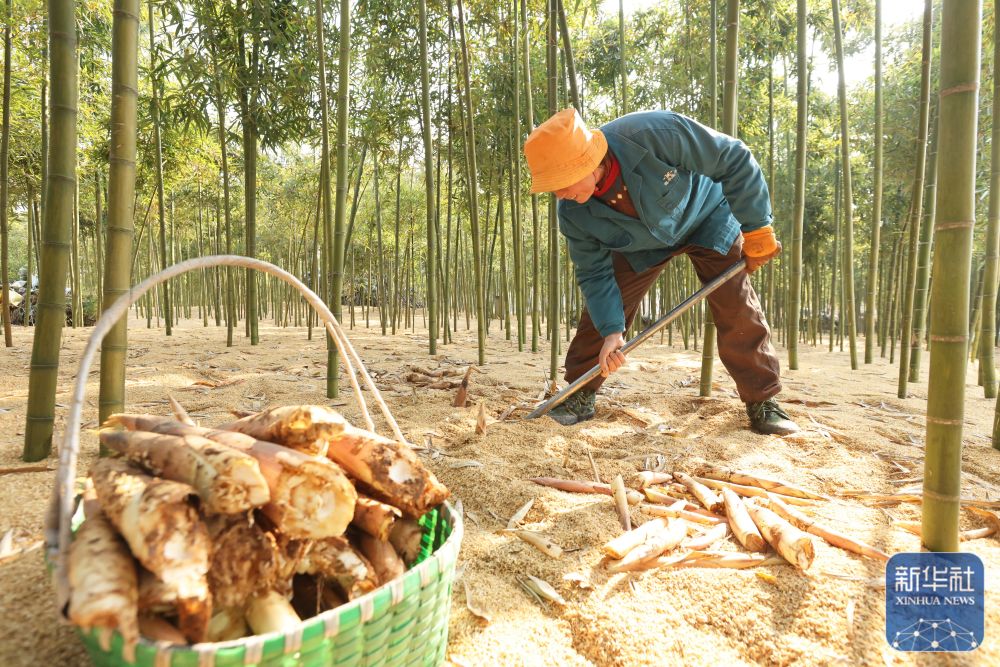 12月21日,浙江省湖州市德清县乾元镇农民在竹林挖笋。新华社发(倪立芳摄)