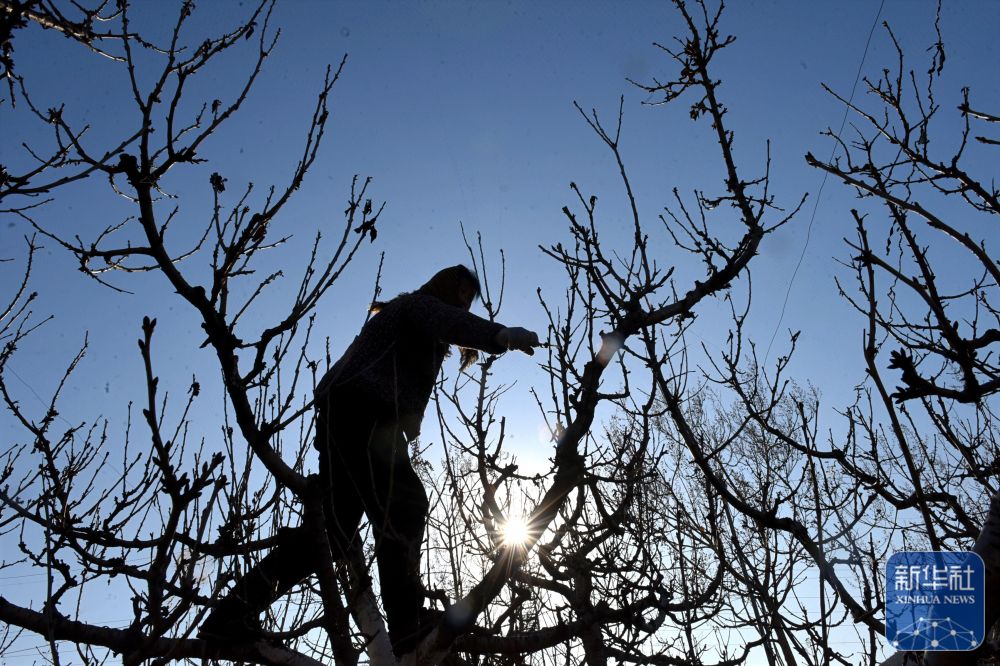 12月21日,在山东省淄博市沂源县南鲁山镇三岔店村,村民对果树进行冬季修剪。新华社发(赵东山摄)