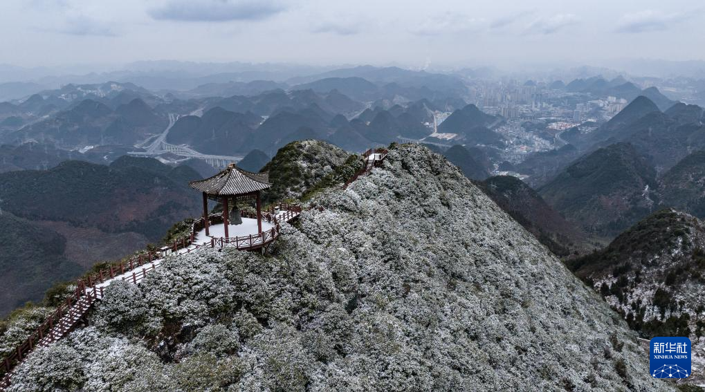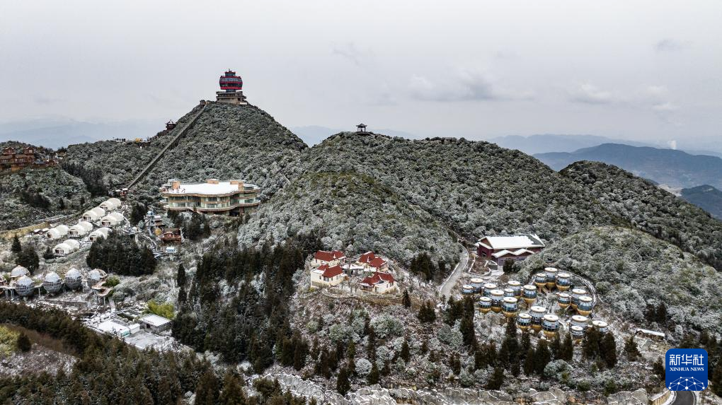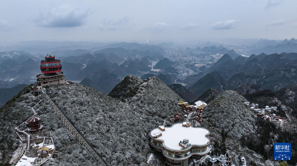 1月26日在贵州省六盘水市钟山区双戛街道拍摄的雪景(无人机照片)。新华社记者 陶亮 摄