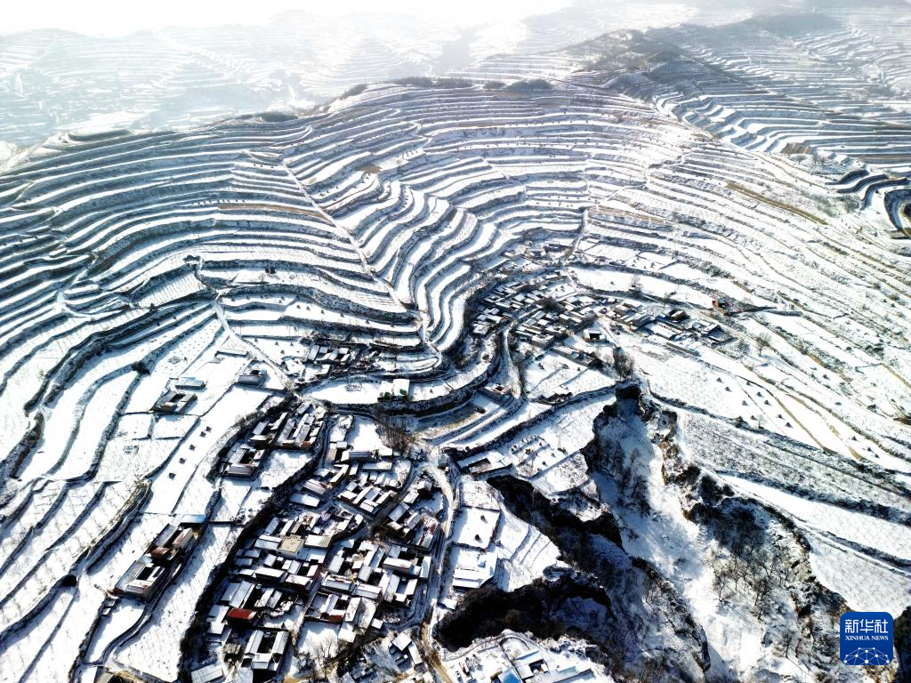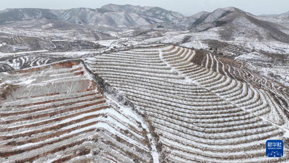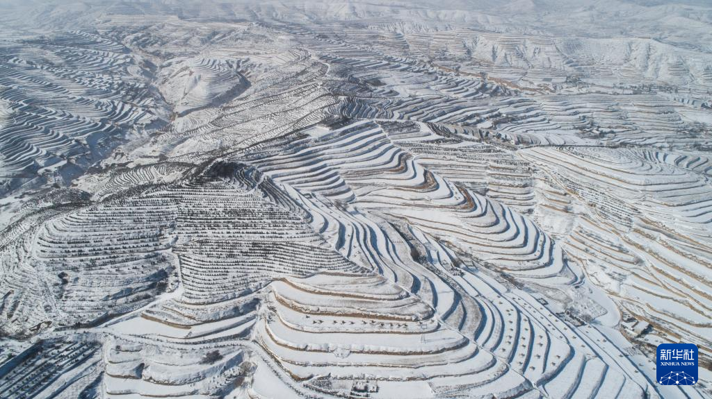 1月26日在甘肃省平凉市静宁县双岘镇拍摄的雪后梯田(无人机照片)。新华社发(王毅摄)