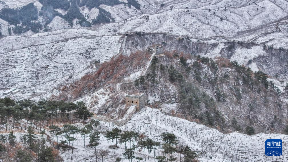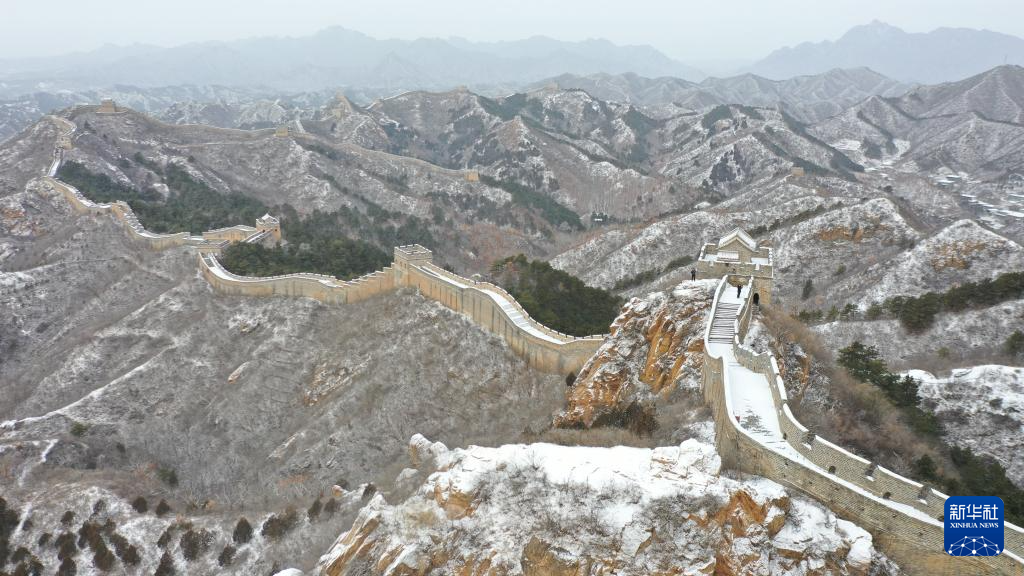 1月26日在河北省承德市滦平县拍摄的金山岭长城雪景(无人机照片)。新华社发(周万平摄)