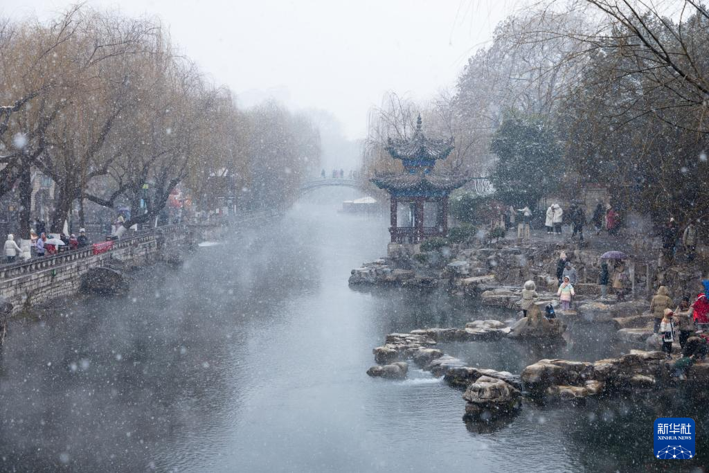 1月26日,人们在山东省济南市护城河边赏雪游玩。新华社发(徐舟摄)