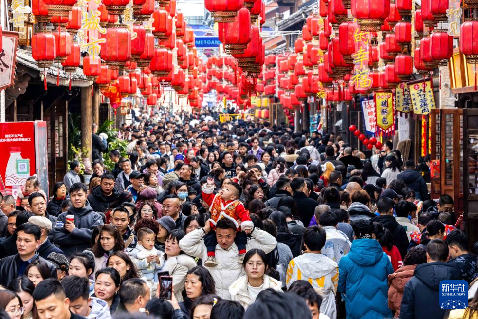 1月29日,游客在贵州省安顺市西秀区安顺古城历史文化街区游玩。新华社发(陈熙摄)