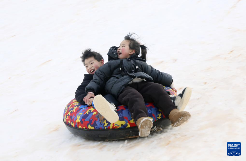 1月29日,游客在河南省洛阳市汝阳县柏树镇窑沟村滑雪。新华社发(康红军摄)