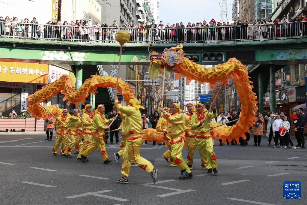 1月29日,游客在贵州省黔南布依族苗族自治州都匀市观看舞龙表演。新华社发(肖伟摄)
